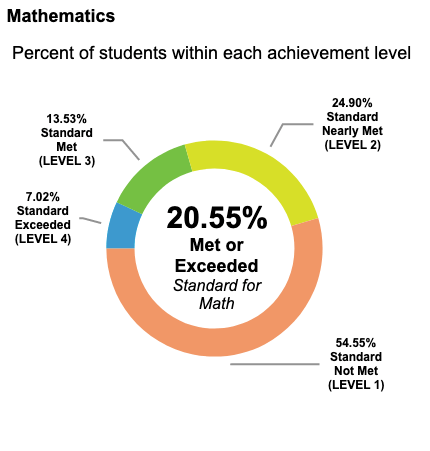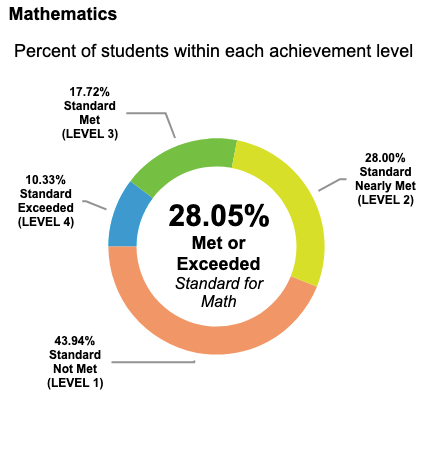 They performed slightly better than Black students, though the numbers were still dismal. Sixty percent of test-eligible Hispanic or Latino students couldn’t read and 62% could not do math.